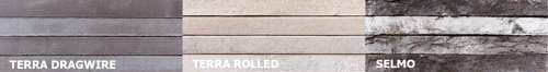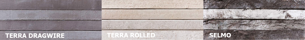 Mit fünf einzigartigen Varianten – Selmo, Terra Dragwire und Terra Rolled – bietet die Kollektion eine breite Palette an Strukturen, Farben und Oberflächen. Das beeindruckende Langformat (500x100x40 mm) unterstreicht den horizontalen Charakter und verleiht jedem Entwurf eine elegante, architektonische Ausstrahlung. Vom handgefertigten Charme bis zur klaren Industrieoptik – jede Variante erzählt ihre eigene Geschichte an Fassade oder Wand.