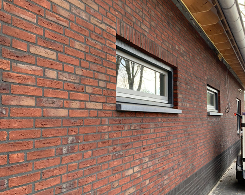 Die Flame-Kollektion ist mehr als nur eine Serie von Steinen – sie ist ein stilistisches Statement. Jeder Verblenderstein durchläuft ein spezielles Sinterverfahren, bei dem vor dem Brennen Kohle zwischen die Steine gestreut wird. Durch die enorme Hitze schmelzen und verfärben sich die Steine stellenweise und erzeugen so ein lebendiges, natürliches Farbspiel. Kein Stein gleicht dem anderen – genau das macht jedes Projekt einzigartig.