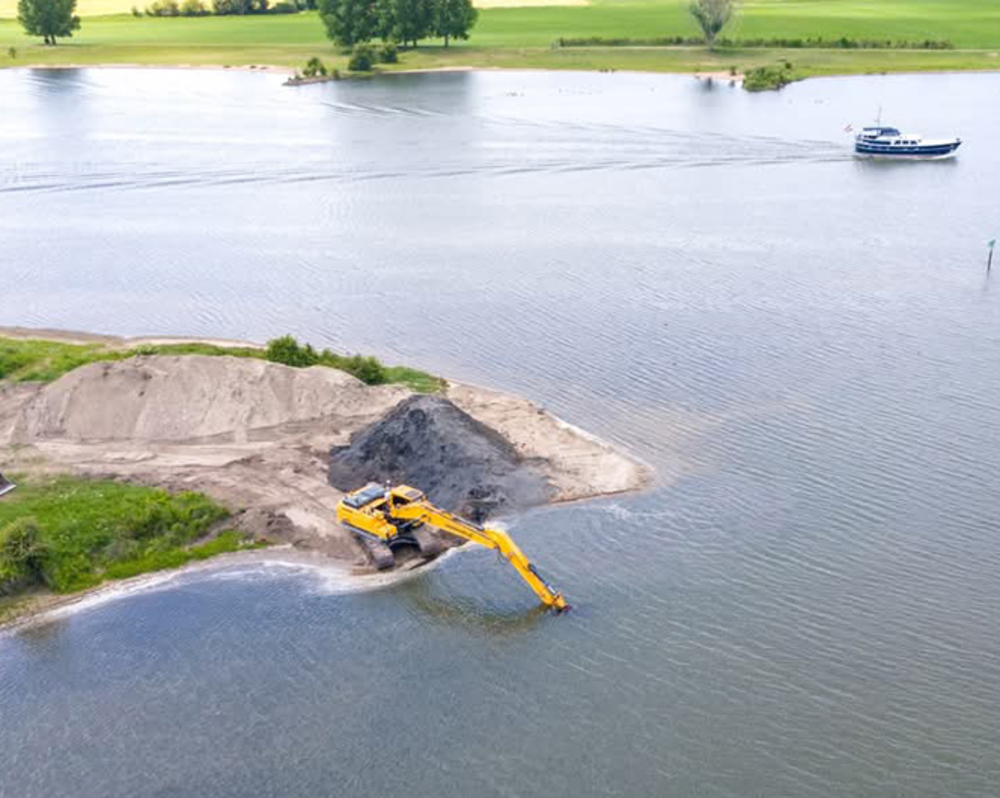 Eine Verladestelle ist ein speziell eingerichteter Kai, an dem Schiffe sicher anlegen können, um Waren zu laden und zu entladen. Für De Rijswaard bedeutet dies, dass Schiffe Flusslehm anliefern und unsere Ziegel zu den Kunden transportieren. Der Bau einer Verladestelle ist eine Investition sowohl in Effizienz als auch in Nachhaltigkeit. Der Transport über Wasser ist seit Jahrhunderten eine verlässliche Methode für den Gütertransport und bietet auch heute noch enorme Vorteile. Er benötigt weniger Energie pro Tonnenkilometer, entlastet das Straßennetz und ist deutlich weniger anfällig für Staus und Verkehrsbeschränkungen. Mit einer zweiten Verladestelle setzen wir auf Zukunftsfähigkeit und stellen sicher, dass unser Werk besser auf die wachsende Nachfrage und die Ambitionen des Bausektors ausgerichtet ist.