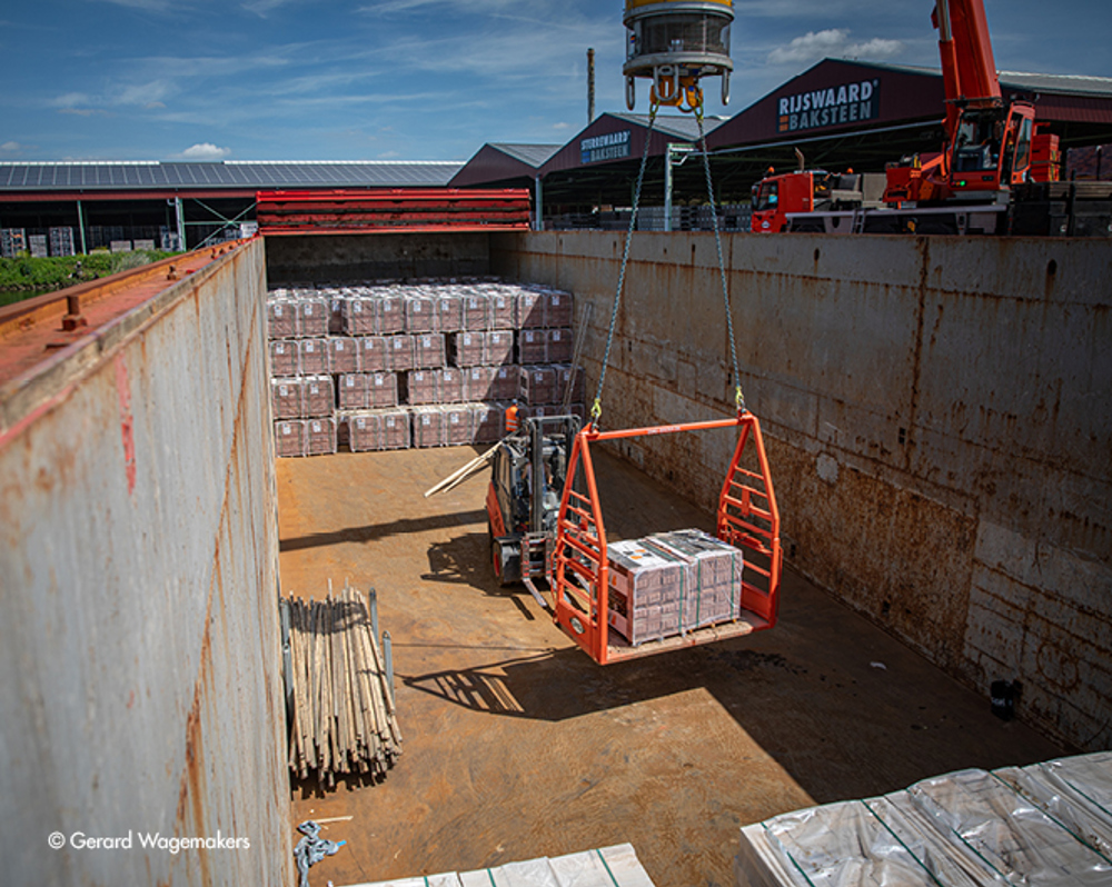 Der Transport per Schiff fügt sich nahtlos in die umfassendere Nachhaltigkeitsstrategie von De Rijswaard und der keramischen Bauindustrie ein. Während Straßentransporte zwangsläufig zu CO₂-Emissionen und Verkehrsbelastungen beitragen, bietet die Binnenschifffahrt eine deutlich umweltfreundlichere Alternative. Unsere zweite Verladestelle ermöglicht es, einen größeren Teil sowohl der Tonanlieferung als auch des Ziegeltransports über Schiffe abzuwickeln. Damit reduzieren wir nicht nur Emissionen, sondern auch die Abhängigkeit vom Straßentransport. Dies entspricht den übergeordneten Zielen der Branche, wie sie in der Technology Roadmap Bouwkeramiek 2030 festgelegt sind, in der Nachhaltigkeit, Kettenoptimierung und Kreislaufwirtschaft im Mittelpunkt stehen. Für unsere Kunden bedeutet dies, dass jedes Projekt, in dem unsere Ziegel eingesetzt werden, indirekt zu einer geringeren Umweltbelastung beiträgt. Gemeinsam bauen wir an einer Zukunft, in der Qualität und Nachhaltigkeit Hand in Hand gehen.
